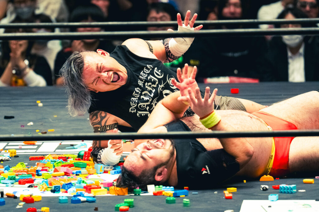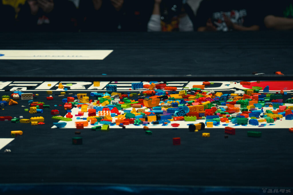 大きな大人が遊んでいるように見えるTOYブロックデスマッチ。…