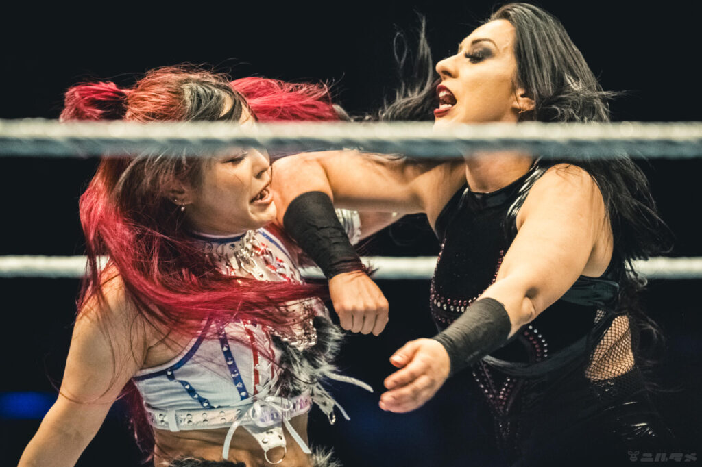 どかどかとぶつかり合うリア・リプリーとラケル・ロドリゲス