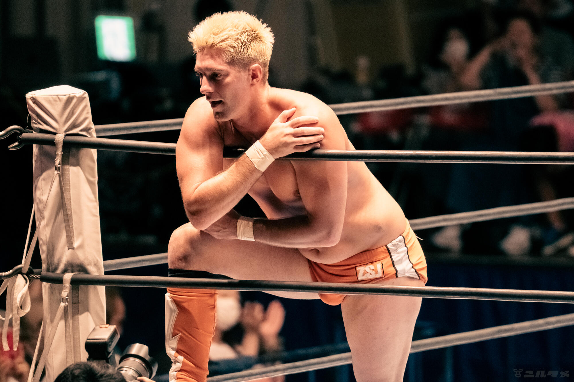 コーナー最上段からのスパニッシュフライ!スパニッシュフライっ…