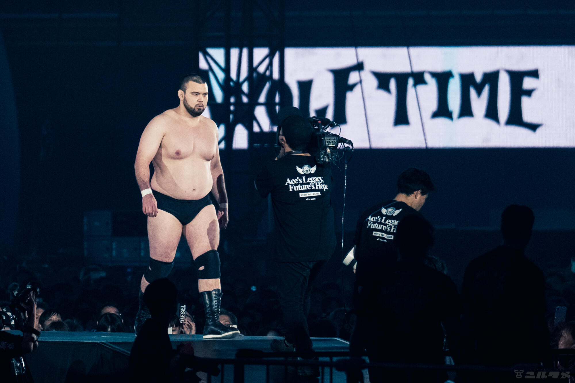会場のボルテージが一気に高まったウルフアロンの入場。期待のハードルが上がりきっているからプレッシャーすごかっただろうな。