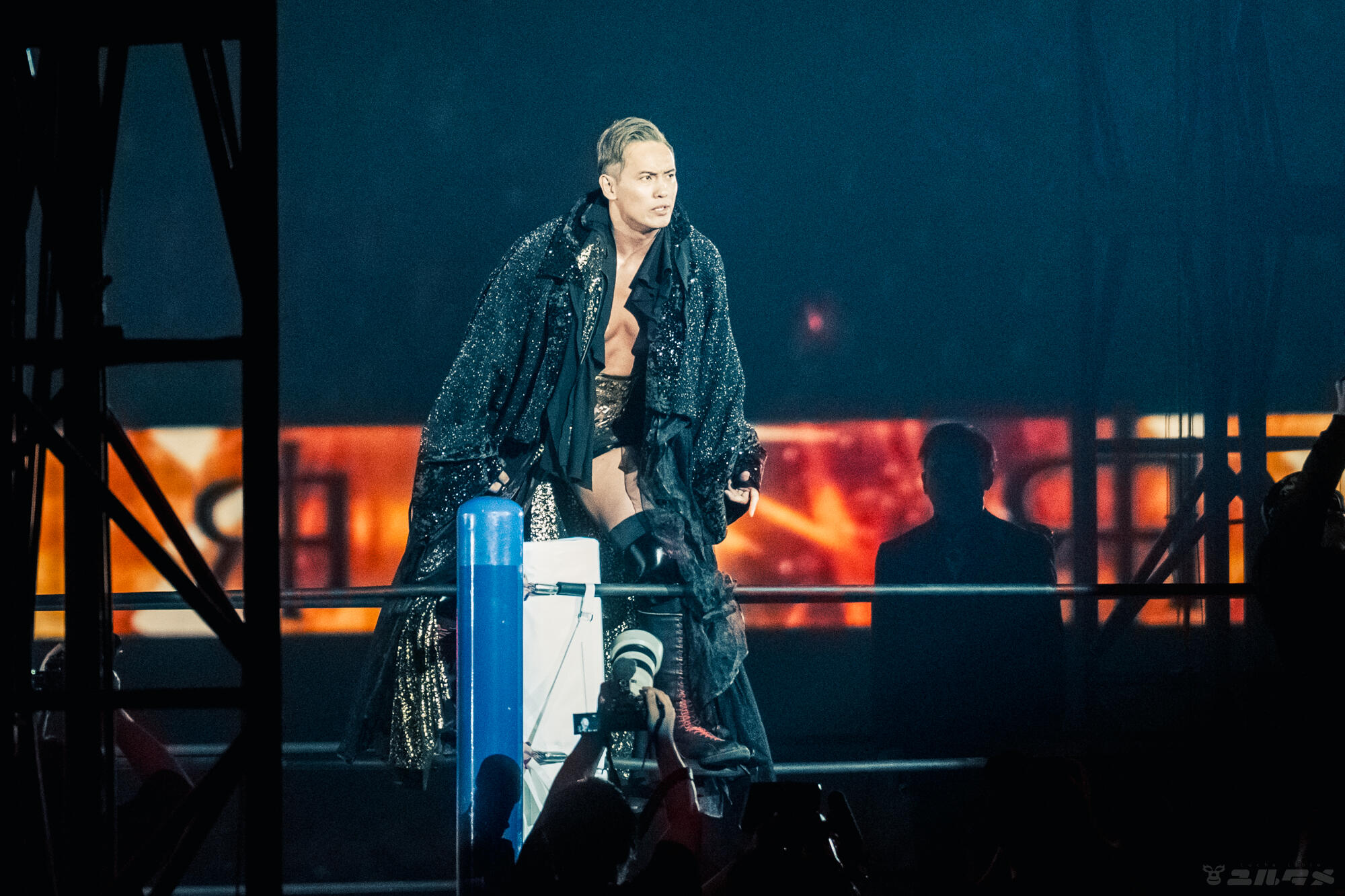 冷たい目で試合の成り行きを見守っているオカダ・カズチカ!