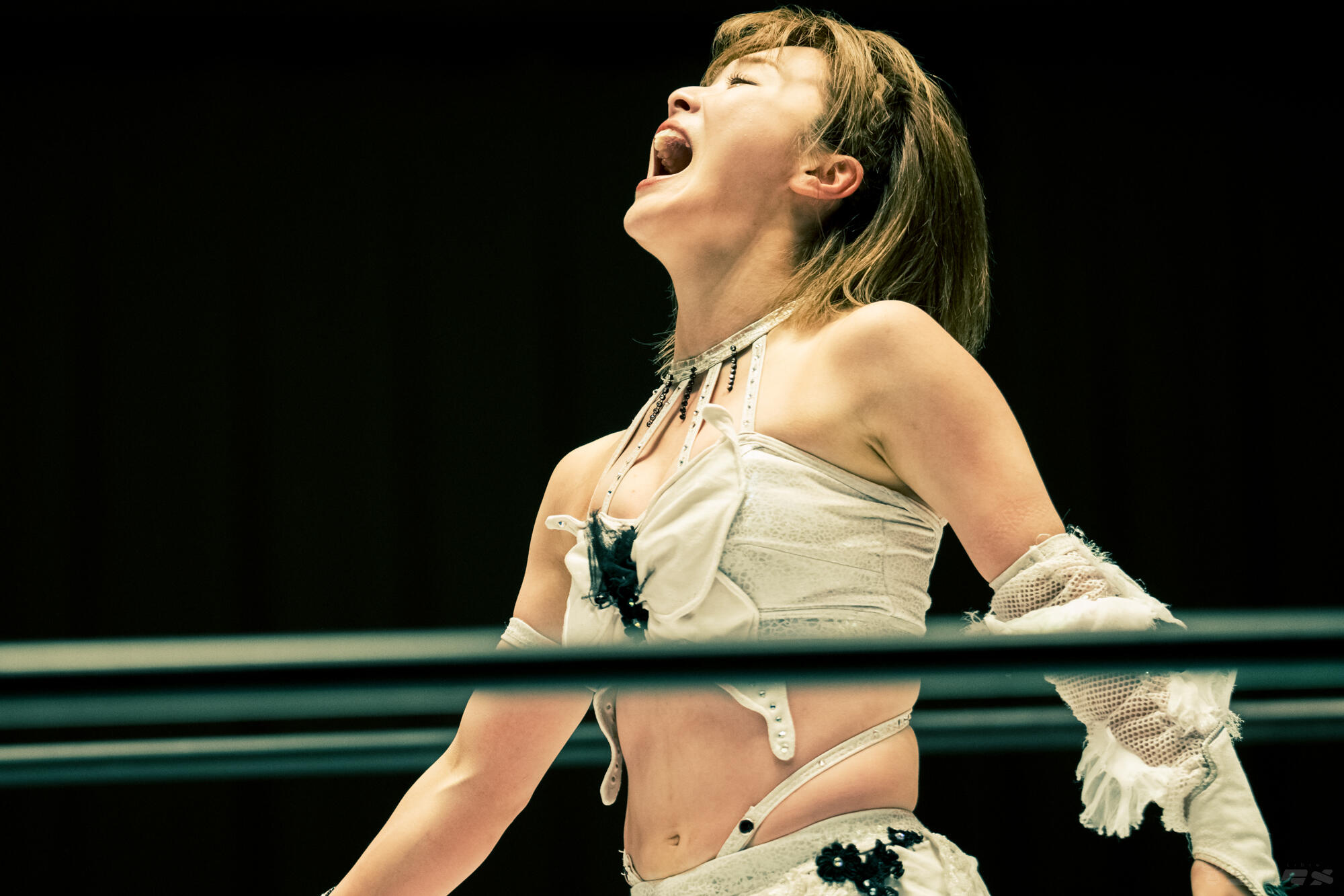 コーナーでアピールする舞華のゴージャスな後ろ姿